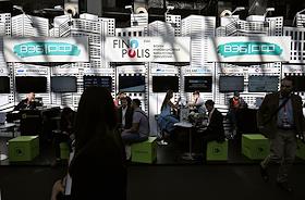 Форум инновационных финансовых технологий Finopolis в университете "Сириус". Жанровая фотография. Стенд "Газпромбанк" на форуме.