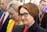 Форум инновационных финансовых технологий Finopolis в университете "Сириус". Председатель Центрального Банка России Эльвира Набиуллина (в центре) и первый заместитель председателя Центрального банка России Ольга Скоробогатова (слева) во время работы форума.