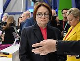Форум инновационных финансовых технологий Finopolis в университете "Сириус". Председатель Центрального Банка России Эльвира Набиуллина (слева) во время работы форума.