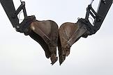 Церемония открытия участка автомобильной дороги Р-280 "Новороссия" после капитального ремонта. Жанровая фотография. Два ковша экскаватора.