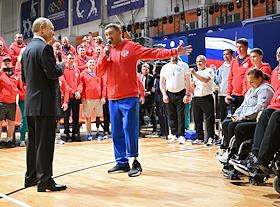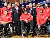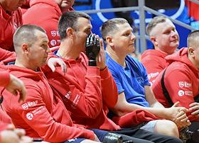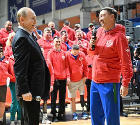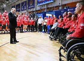 Рабочая поездка президента России Владимира Путина в Приволжский федеральный округ. Форум "Россия - спортивная держава". Президент России Владимир Путин (в центре, слева) и президент Паралимпийского комитета России Павел Рожков (в центре, справа) во время встречи с участниками соревнований для ветеранов СВО "Герои нашего времени".