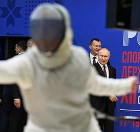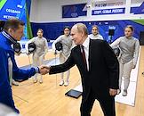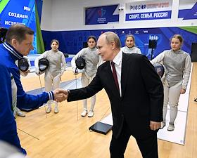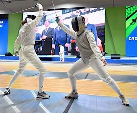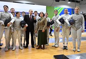 Рабочая поездка президента России Владимира Путина в Приволжский федеральный округ. Форум "Россия - спортивная держава". Воспитанники Центра спортивной подготовки по фехтованию Республики Башкортостан.