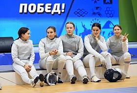 Рабочая поездка президента России Владимира Путина в Приволжский федеральный округ. Форум "Россия - спортивная держава". Воспитанницы Центра спортивной подготовки по фехтованию Республики Башкортостан.
