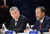 Рабочая поездка президента России Владимира Путина в Приволжский федеральный округ. Форум "Россия - спортивная держава". Глава Республики Башкортостан Радий ХАбиров (слева) и полномочный представитель президента в Приволжском федеральном округе Игорь Комаров (справа) во время заседания Совета при президенте России по развитию физической культуры и спорта по вопросу "О роли негосударственных организаций в развитии физической культуры и спорта".