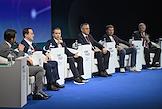 Форум инновационных финансовых технологий Finopolis в университете "Сириус". Пленарная дискуссия: "Прорубят ли ЦФА окно в Web 3.0?". Слева направо: финансовый обозреватель РБК-ТВ Никита Макаров, генеральный директор процессинговой компании Uniteller Алексей Богаткин, председатель совета директоров ООО "Дигинавис" Николай Никифоров, заместитель председателя Центрального Банка России Филипп Габуния, член экспертного совета "Агентства стратегических инициатив" Дмитрий Мариничев и директор дивизиона "Транзакционный бизнес" ПАО "Сбербанк" Сергей Попов во время дискуссии.