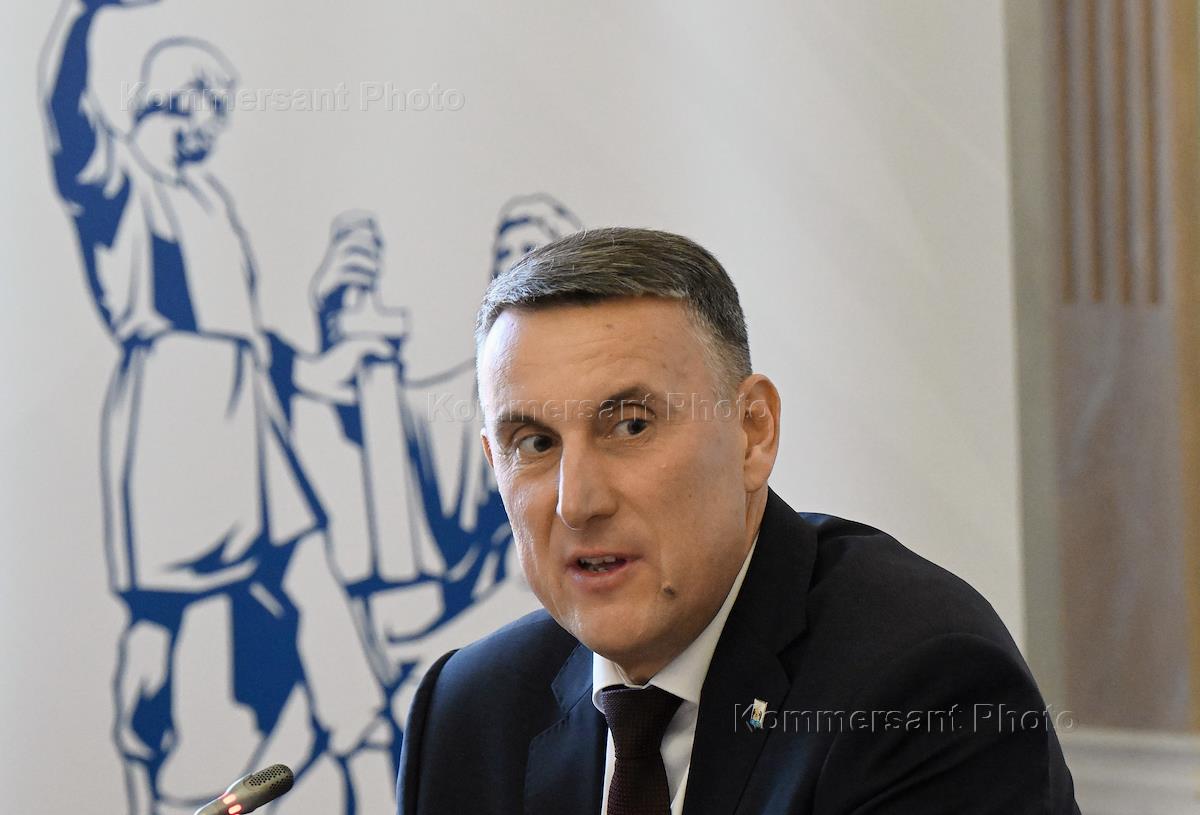 Собрание Союза российских городов на тему "Проблемы и перспективы городского развития" в Общественной палате России. Председатель комитета Государственной думы России по региональной политике и местному самоуправлению Алексей Диденко во время собрания.