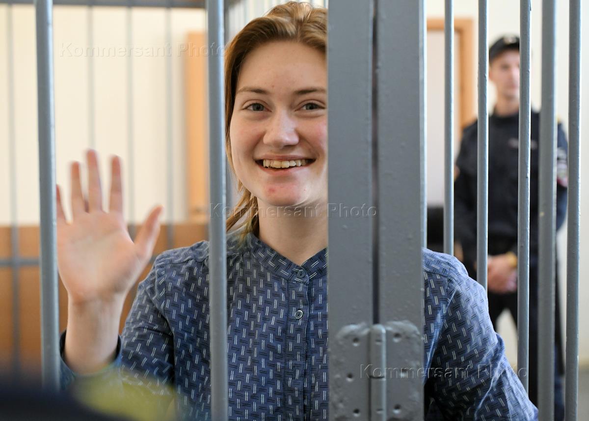 Судебное заседание по делу Дарьи Козыревой, обвиняемой по статье о повторной дискредитации армии, в Петроградском районном суде. Обвиняемая Дарья Козырева после окончания заседания суда.