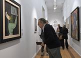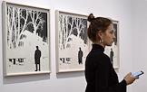 Пресс-показ выставки "Вещи и видения". Новая экспозиция коллекции Московского музея современного искусства (MMOMA), приуроченная 25-летию музея, в MMOMA на Петровке. Посетители во время пресс-показа.