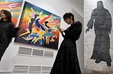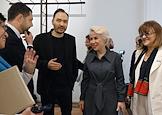 Пресс-показ выставки "Вещи и видения". Новая экспозиция коллекции Московского музея современного искусства (MMOMA), приуроченная 25-летию музея, в MMOMA на Петровке. Слева направо: заместитель министра культуры России Надежда Преподобная, куратор выставки Андрей Егоров и исполнительный директор ММОМА Василий Церетели во время пресс-показа.