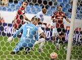 Мир Российская Премьер-Лига (РПЛ) 2024/2025. 12-й тур. Матч между командами "Акрон" (Тольятти) - "Зенит" (Санкт-Петербург) на стадионе "Солидарность Арена". Вратарь команды "Акрон" Сергей Волков (второй слева) во время матча.