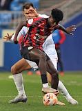 Мир Российская Премьер-Лига (РПЛ) 2024/2025. 12-й тур. Матч между командами "Акрон" (Тольятти) - "Зенит" (Санкт-Петербург) на стадионе "Солидарность Арена". Игрок команды "Зенит" Лусиано Гонду (слева) и игрок команды "Акрон" Марат Бокоев во время матча.