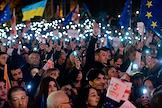 Акция "Грузия выбирает ЕС" в Тбилиси. Участники во время акции.