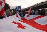 Акция "Грузия выбирает ЕС" в Тбилиси. Участники с баннерами партии "Грузинская мечта" во время акции.