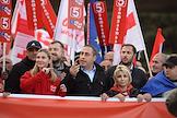 Акция "Грузия выбирает ЕС" в Тбилиси. Участники с баннерами политической партии "Единое национальное движение" (ЕНД) во время акции.