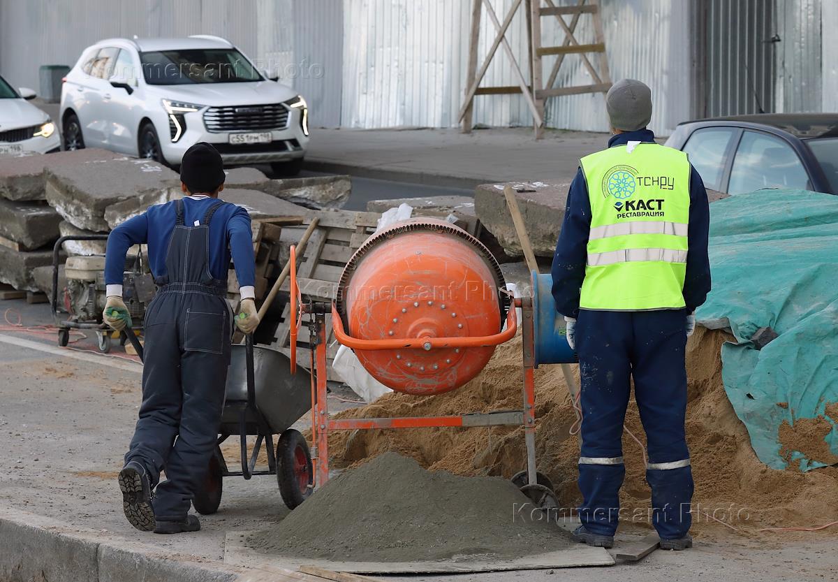 Работы по модернизации причала "Летний сад" на реке Неве. Жанровая фотография. Рабочие во время замены железобетонных понтонов на металлические с улучшенными характеристиками.