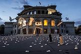 Юбилейное мероприятие к 100-летию Сергея Параджанова в Национальном академическом театре оперы и балета им. Александра Спендиаряна. Жанровая фотография. Раскрытые книги на площади Свободы перед зданием театра.