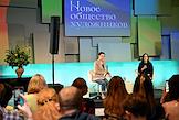 Пресс-показ выставки "Новое общество художников" об одноименном художественном объединении Серебряного века в Музея русского импрессионизма. Директор Музее русского импрессионизма Юлия Петрова (слева) и куратор выставки Ольга Юркина (справа) во время пресс-конференции перед началом показа.