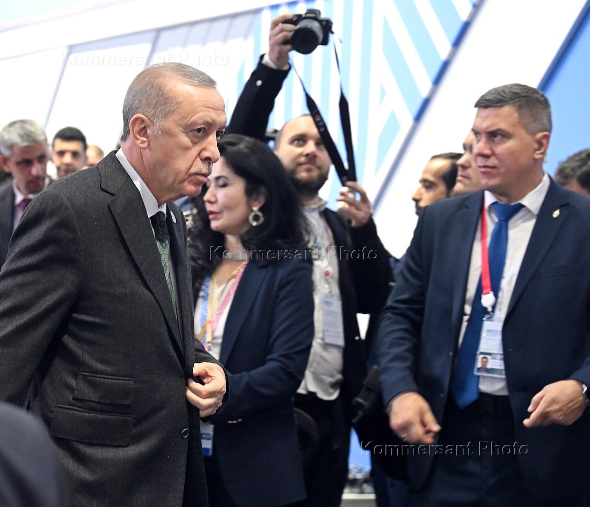 XVI BRICS Summit at the Kazan Expo IEC. Plenary session in the "outreach"/"BRICS plus" format. Turkish President Recep Tayyip Erdogan before the start of the meeting.