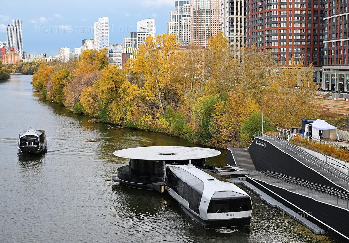 Виды Москвы. Жилой комплекс "Мой адрес на Береговом" и речной трамвайчик у причала "Береговой".