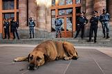 Митинг сторонников оппозиционного движения у здания Конституционного суда Армении. Сотрудники полиции во время дежурства на митинге.