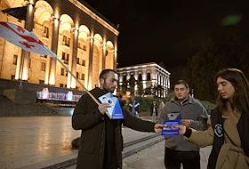 Парламентские выборы в Грузии. Акция у парламента Грузии накануне выборов, организованная студенческими движениями "За свободу" и "Дапиони".