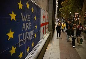 Парламентские выборы в Грузии. Виды Тбилиси во время предвыборного кампании. Жанровая фотография.
