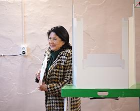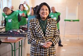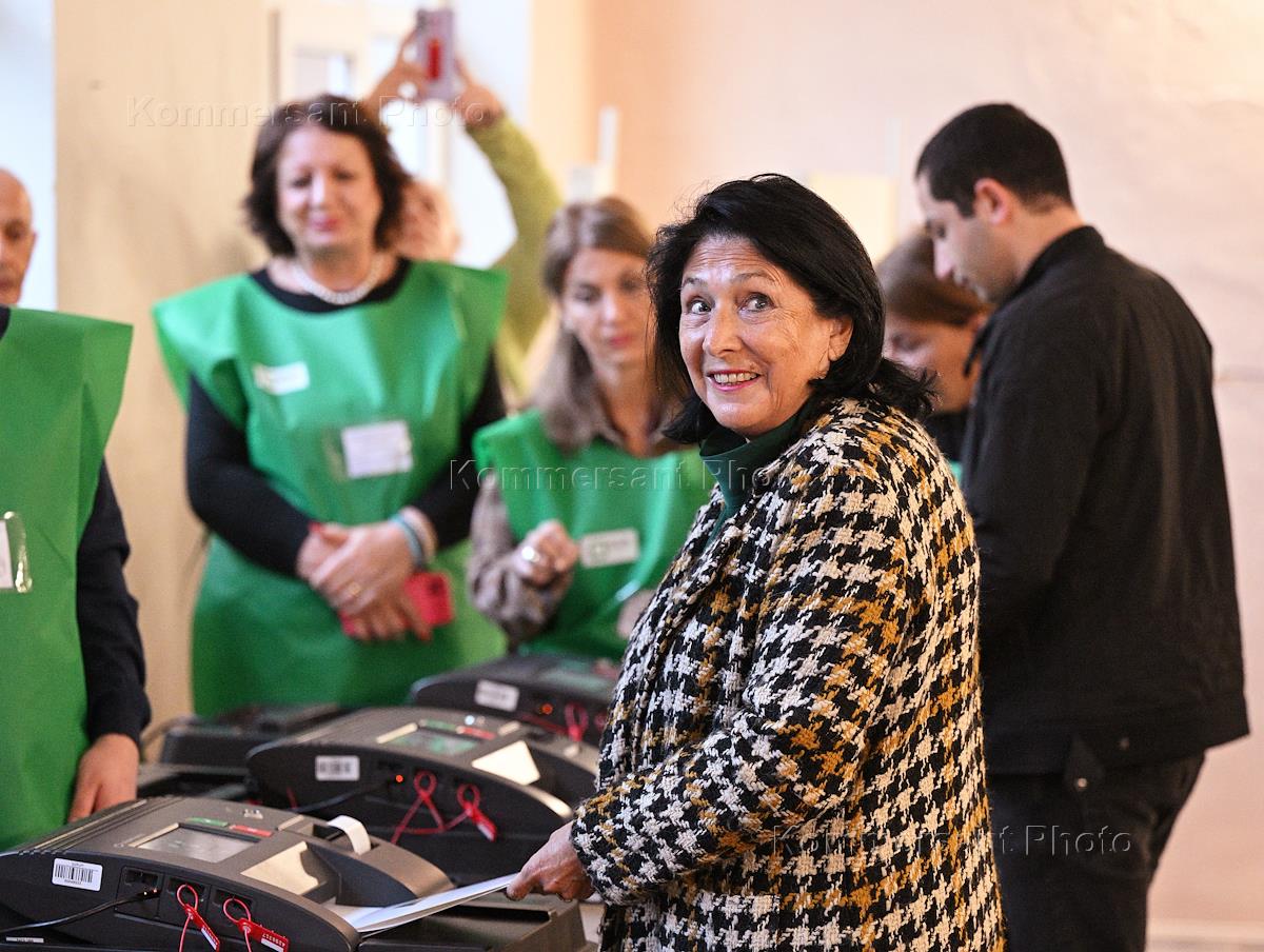 Парламентские выборы в Грузии. Президент Грузии Саломе Зурабишвили во время голосования на избирательном участке в школе №67.