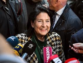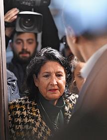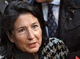 Парламентские выборы в Грузии. Президент Грузии Саломе Зурабишвили во время общения с журналистами после голосования.