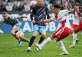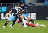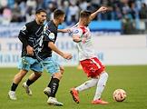 Мир Российская Премьер-Лига (РПЛ) 2024/2025. 13-й тур. Матч между командами "Пари Нижний Новгород" (Нижний Новгород) - "Спартак" (Москва) на стадионе "Нижний Новгород". Игрок команды "Спартак" Тео Бонгонда (слева) и игрок команды "Пари Нижний Новгород" Лука Тичич (справа) во время матча.