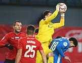 Мир Российская Премьер-Лига (РПЛ) 2024/2025. 13-й тур. Матч между командами "Химки" (Химки) - "Динамо" (Москва) на стадионе "Арена Химки". Вратарь команды "Динамо" Андрей Лунев (справа) во время матча.