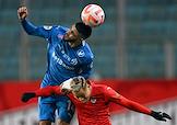 Мир Российская Премьер-Лига (РПЛ) 2024/2025. 13-й тур. Матч между командами "Химки" (Химки) - "Динамо" (Москва) на стадионе "Арена Химки". Игрок команды "Динамо" Муми Нгамелё (слева) и игрок команды "Химки" Данил Степанов (справа) во время матча.