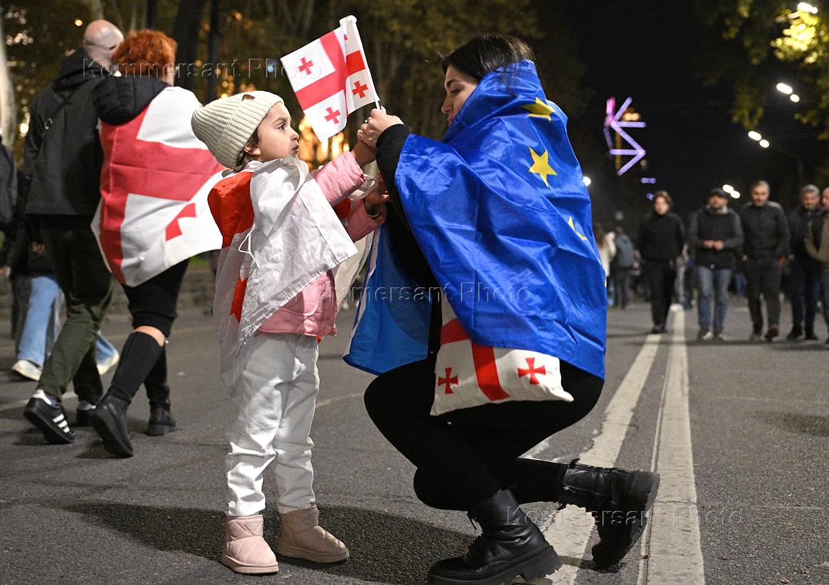 Ситуация в Тбилиси после парламентских выборов в Грузии. Сторонники оппозиции во время акции протеста у здания Парламента Грузии. Парламентские выборы прошли в Грузии 26 октября. По данным ЦИК, правящая "Грузинская мечта" набрала 53,93% голосов. В парламент также прошли четыре оппозиционные партии, получив в сумме 37,78%. Представители оппозиции уже заявили, что не признают данные ЦИК.