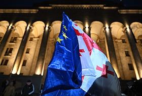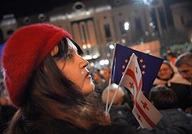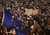 Ситуация в Тбилиси после парламентских выборов в Грузии. Акция протеста оппозиции против результатов выборов у здания Парламента Грузии. Парламентские выборы прошли в Грузии 26 октября. По данным ЦИК, правящая "Грузинская мечта" набрала 53,93% голосов. В парламент также прошли четыре оппозиционные партии, получив в сумме 37,78%. Представители оппозиции уже заявили, что не признают данные ЦИК. Президент Грузии Саломе Зурабишвили (справа) во время акции.