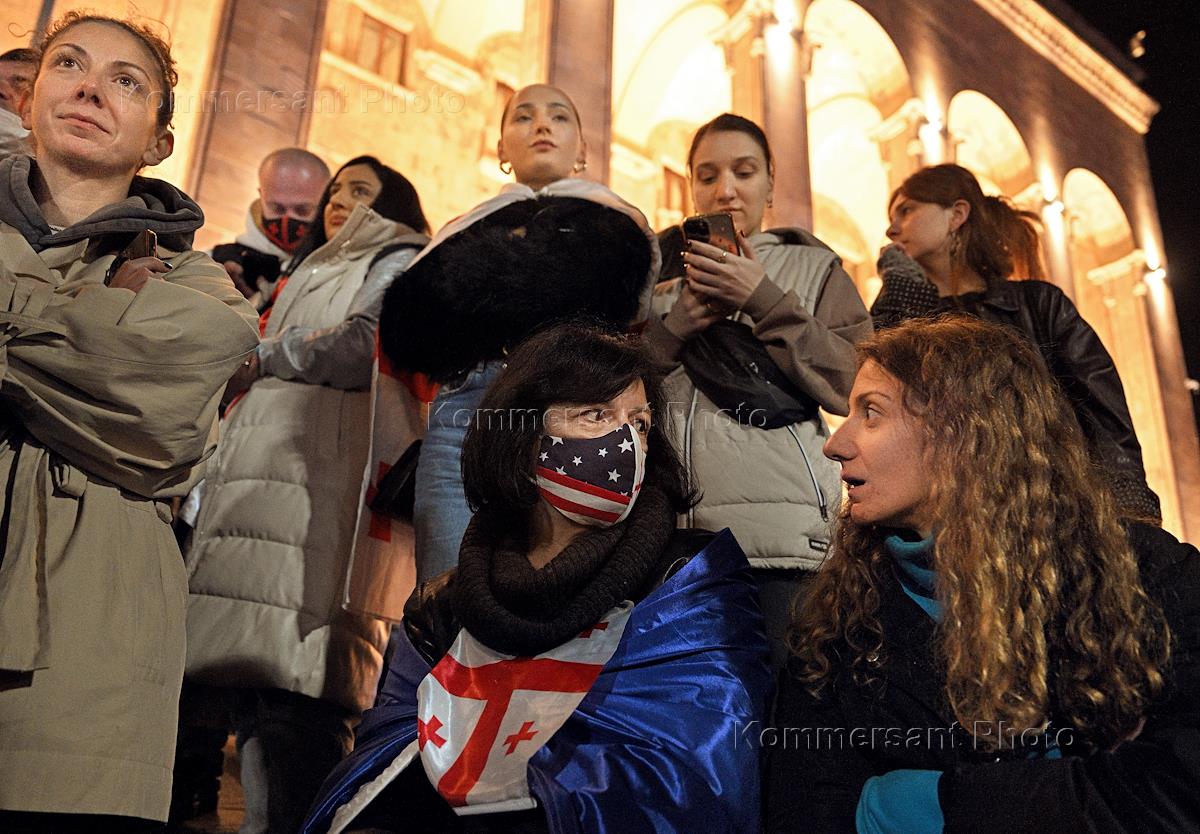 Ситуация в Тбилиси после парламентских выборов в Грузии. Сторонники оппозиции во время акции протеста у здания Парламента Грузии. Жанровая фотография. Парламентские выборы прошли в Грузии 26 октября. По данным ЦИК, правящая "Грузинская мечта" набрала 53,93% голосов. В парламент также прошли четыре оппозиционные партии, получив в сумме 37,78%. Представители оппозиции уже заявили, что не признают данные ЦИК.
