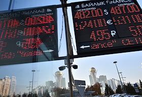 Виды Астаны. Жанровая фотография. Информационное электронное табло с курсами валют.