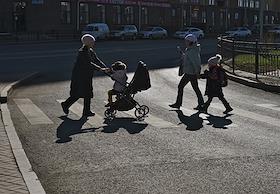 Виды Астаны. Жанровая фотография. Женщины с детьми на пешеходном переходе.