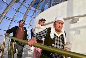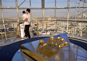 Виды Астаны. Жанровая фотография. Люди на смотровой площадке монумента "Астана-Байтерек".