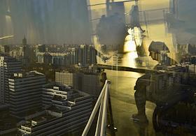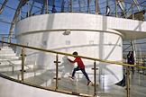 Виды Астаны. Жанровая фотография. Отражение женщины в стекле смотровой площадки монумента "Астана-Байтерек".