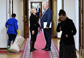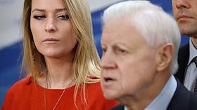 Пленарное заседание Государственной думы (ГД) России. Первый заместитель председателя комитета ГД России по просвещению Яна Лантратова (слева) и председатель партии "Справедливая Россия – За Правду", руководитель фракции "Справедливая Россия – За Правду" в ГД России Сергей Миронов (справа) перед началом заседания.