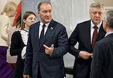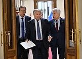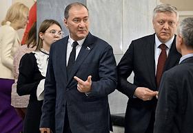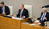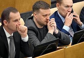 Пленарное заседание Государственной думы (ГД) России. Слева направо: заместитель председателя комитета ГД России по охране здоровья Сергей Леонов, председатель комитета ГД России по региональной политике и местному самоуправлению Алексей Диденко и первый заместитель председателя комитета ГД России по безопасности и противодействию коррупции Андрей Луговой во время заседания.