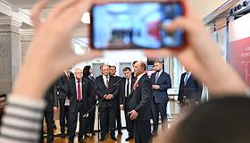 Торжественная церемония открытия выставки "Санкт-Петербургский государственный университет: 300 лет служения Отечеству" в Государственной думе (ГД) России.