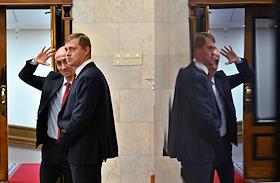Пленарное заседание Государственной думы (ГД) России. Председатель комитета ГД России по делам Содружества Независимых Государств, евразийской интеграции и связям с соотечественниками Леонид Калашников перед началом заседания.