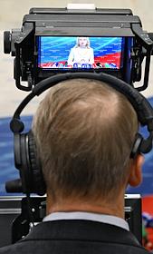 Пленарное заседание Государственной думы (ГД) России. Жанровая фотография. Оператор во время видеосъемки.