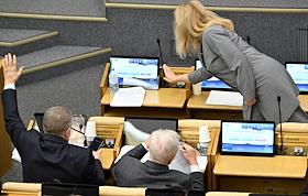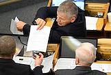 Пленарное заседание Государственной думы (ГД) России. Жанровая фотография. Депутаты ГД России во время голосования.
