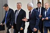 Торжественная церемония открытия выставки "Санкт-Петербургский государственный университет: 300 лет служения Отечеству" в Государственной думе (ГД) России. Слева направо: председатель комитета ГД России по науке и высшему образованию Сергей Кабышев, ректор Санкт-Петербургского государственного университета (СПбГУ) Николай Кропачев, первый заместитель председателя комитета ГД России по науке и высшему образованию Александр Мажуга и лидер КПРФ, руководитель фракции КПРФ в ГД России Геннадий Зюганов во время церемонии.