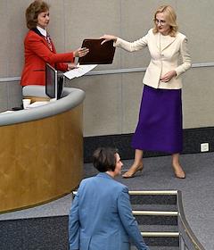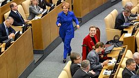 Пленарное заседание Государственной думы (ГД) России. Заместитель председателя ГД России Ирина Яровая (справа) во время заседания.