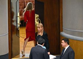 Пленарное заседание Государственной думы (ГД) России. Первый заместитель председателя комитета ГД России по международным делам Светлана Журова (в центре) во время заседания.