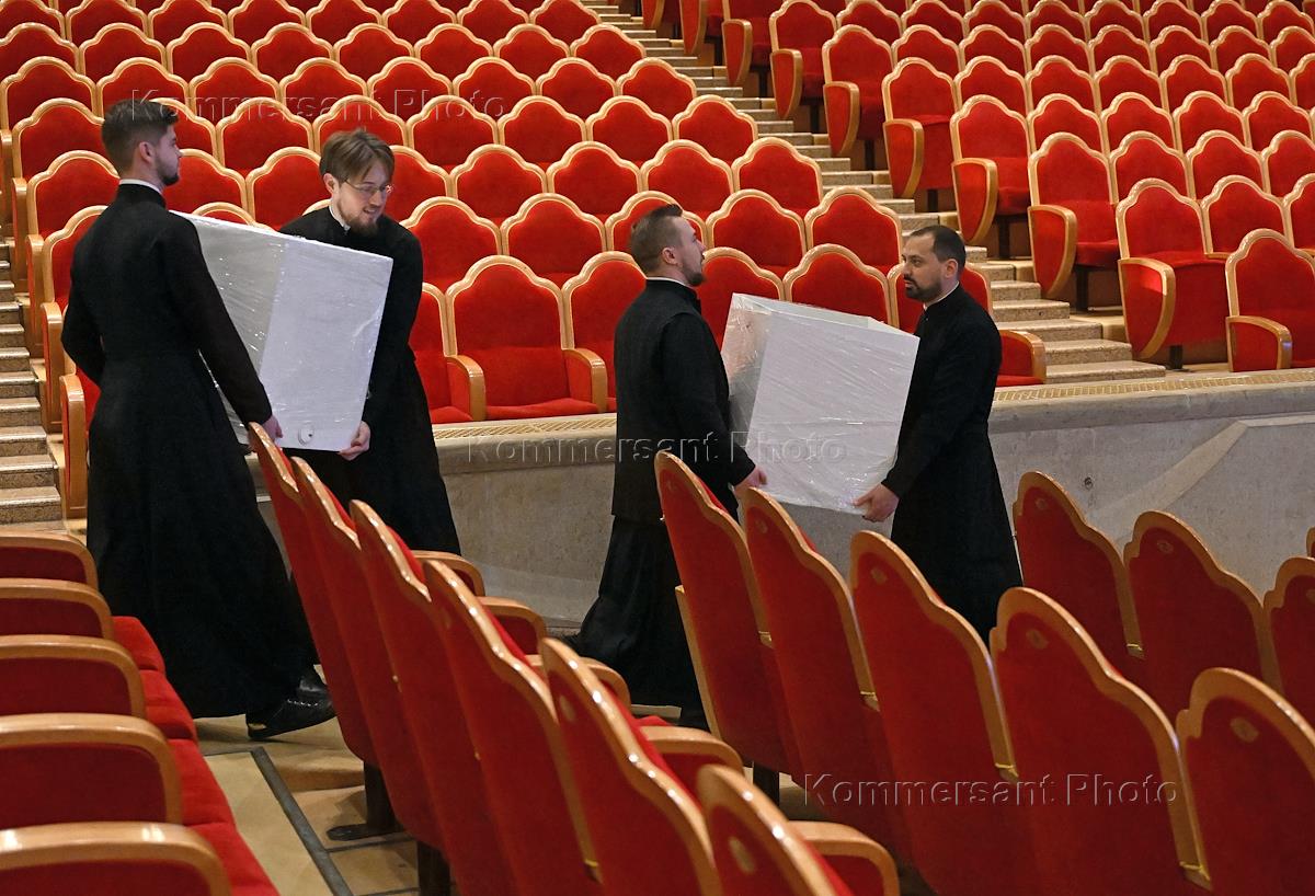 VIII Всемирный конгресс соотечественников, проживающих за рубежом, под лозунгом "Вместе с Россией", в зале Церковных Соборов храма Христа Спасителя. Подготовка к заседанию конгресса.