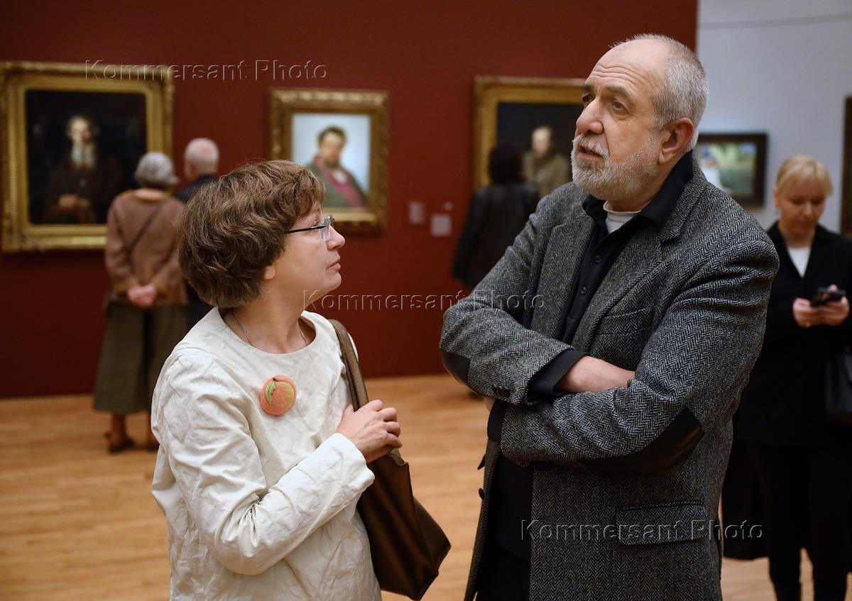 Церемония открытия выставки "Передвижники", посвященной 150-летию объединению художников-передвижников, в новом корпусе Государственной Третьяковской галерее на Кадашёвской набережной. Директор Центрального музея древнерусского искусства имени Андрея Рублёва Михаил Миндлин (справа) на церемонии.