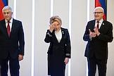 XI Торжественная церемония награждения детей и подростков, проявивших мужество в экстремальных ситуациях и спасших человеческие жизни, в Совете Федерации (СФ) России. Слева направо: министр внутренних дел России Владимир Колокольцев, председатель СФ России Валентина Матвиенко и представитель в СФ России от законодательного (представительного) органа государственной власти Иркутской области Сергей Брилка во время церемонии.